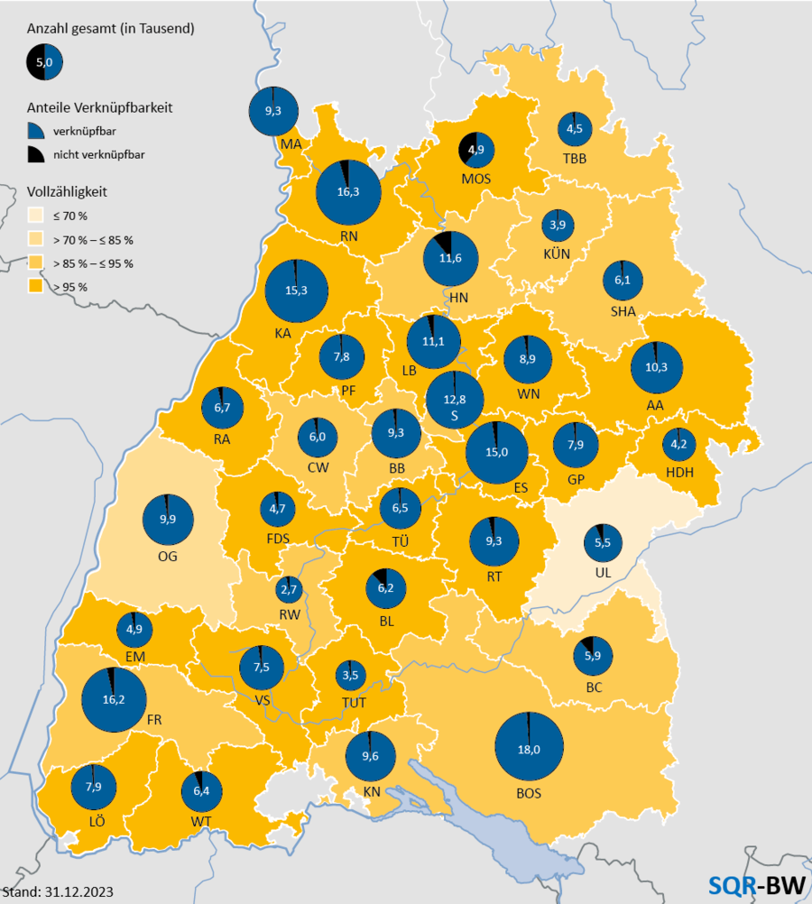 Bei den vorliegenden Daten war eine Verknüpfung in knapp 96 % der Fälle möglich, sie ist somit gegenüber dem Vorjahr stabil geblieben.